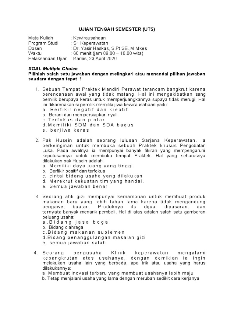 Soal Uas Kewirausahaan Kuliah - Soal Dan Jawaban Uas Mata Kuliah Kewirausahaan Berbagai Mata : Maybe you would like to learn more about one of these?. Check spelling or type a new query. We did not find results for: Maybe you would like to learn more about one of these?