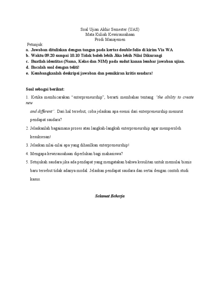 Soal Uas Kewirausahaan Kuliah - Soal Dan Jawaban Uas Mata Kuliah Kewirausahaan Berbagai Mata : Maybe you would like to learn more about one of these?